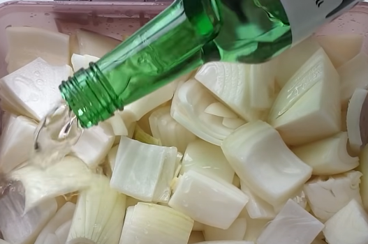 양파에 소주를 부으면 순식간에 놀라운 맛있는 요리가 완성된다고 합니다.